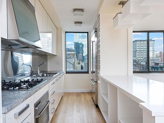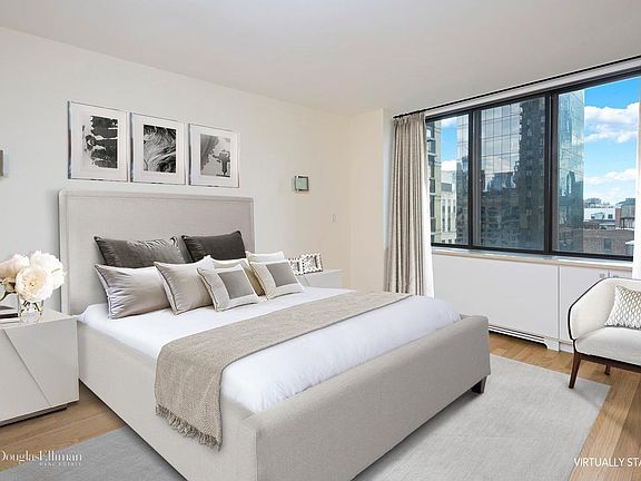 Move right in to this handsomely renovated two bedroom, two bathroom home with a spacious balcony located in Madison Green at 5 East 22nd Street, one of the Flatiron District's most desirable condominiums. Apartment 19C offers spectacular views to the South and East; light floods through the floor to ceiling windows all day long. Enter the gracious foyer which opens seamlessly to the expansive corner living room with dining area. The tastefully designed open, windowed kitchen fitted with custom cabinetry, Silestone countertops, and Viking and Miele appliances makes entertaining an absolute pleasure. Each of the two bedrooms have en suite bathrooms with generous closet space. Additional features including oak plank wood flooring and custom hardwood doors complete this lovely home. Madison Green Condominium is a full service building with 24 hour doorman, concierge, and resident manager. Amenities include laundry facilities on each floor, a state of the art fitness center, the Madison Club resident lounge on the 30th floor, a children's playroom, a garden, a bicycle room, and garage parking. 5 East 22nd Street is located on a stunning tree-lined street, beautifully sited at the south side of historic Madison Square Park. Convenient to some of Manhattan's finest restaurants, the Union Square farmer's market, Fifth Avenue shopping, Eataly, Shake Shack, Whole Foods, Trader Joe's and more. The N, R, and 6 subway lines, and bus stops are less than a block away. Pets are welcome.