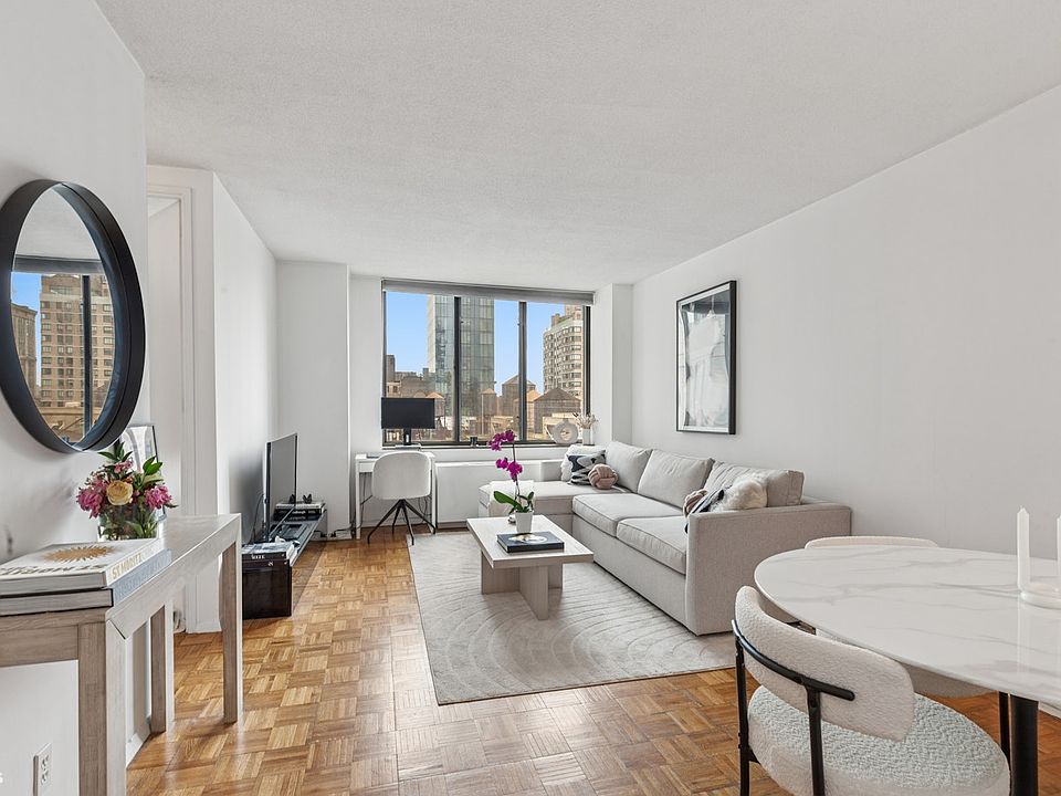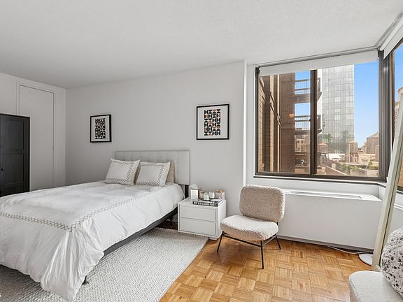 This quiet 20th floor home boasts beautiful light through over-sized windows with east and south exposures. You overlook a set-back planted courtyard with towering Ginkgo trees and south toward 22nd St. Closets are abundant including one large walk-in. This highly sought after building is full-service and includes a complimentary fully-equipped GYM, 30th floor Madison Club resident lounge with Wi-Fi and incredible views of the city, and laundry on every floor. Located on the South side of Madison Square Park on the best tree-lined residential block in Flatiron. Fifth Avenue shopping, Eataly, Trader Joes, Fairway, Whole Foods, Union Square Farmers" Market are nearby. All public transportation is convenient. There are many excellent restaurants in this vibrant neighborhood. I am a RESIDENT BROKER.