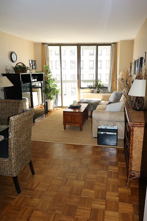 Breathtaking sunsets and open city skyline views from oversized windows. Renovated 1-bedroom with 6 X 9 balcony facing west. Bright and open 20th floor home with 19 X 11 living room, 17 X 10.5 bedroom and three large closets including a walk-in. Renovated pass-thru kitchen with breakfast bar, cherry cabinets, granite countertops and stainless appliances. Upgraded white bathroom with new vanity and floors. Luxury F/S condominium, centrally located on best Flatiron block, steps from Madison Square Park, Eataly, Shake Shack, Union Square farmers market and Fifth Avenue shopping. Building amenities include 24-hr doorman, concierge, resident super, 24-hr complimentary health club, resident lounge with wifi, laundry room on every floor, Chase ATM in the lobby, children's play room, garden and garage. Available 11/1/19. Sorry but dogs are not allowed to tenants in this building.
