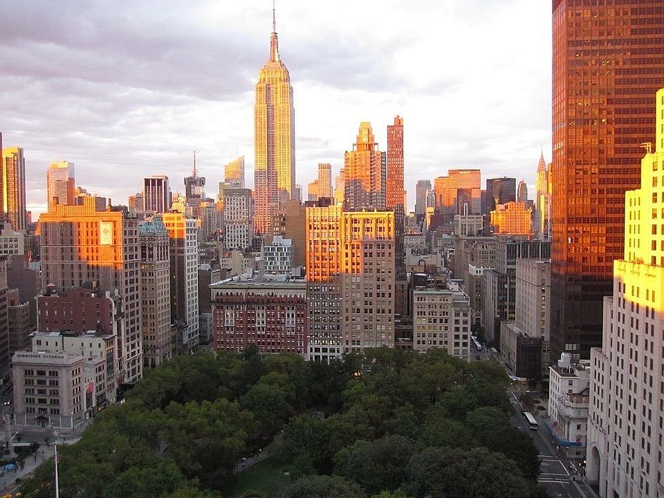 RARE OFFERING. Enjoy brilliant sunsets from the balcony of your bright, high floor, 1273 s.f. corner 2-bedroom, 2-bathroom home. The largest full 2-bedroom line in the building boasts a sizable dining alcove with oversized corner windows that showcase breathtaking views north over Madison Square Park, the ESB, Chrysler Bldg., Met Life Clock Tower and midtown and west sunset views out to the River. A blank white canvas awaits your creative touch. The 10 X 11 windowed kitchen may be opened to the 21.5 X 12' living room. There are winged bedrooms, each 16.5 X 10.5, there is a generous entry foyer and an abundance of closet space. Madison Green is a luxury F/S condo located next to the Iconic Flatiron Bldg in one of the most central and dynamic neighborhoods. There is convenient subway access to the R/W/F/M/6 trains. The building is within a few steps of Madison Square Park, Shake Shack, Eataly, the Union Square farmer's market, Trader Joe's, Fifth Avenue shops and a bevy of popular restaurants. Building amenities include 24-hr drmn, concierge, resident super, 24-hr complimentary fitness center, Madison Club party room with wifi, a laundry room on every floor, ATM in the lobby, children's play room, garden and garage. Madison Green is a well-established condo with excellent finances and low common charges.