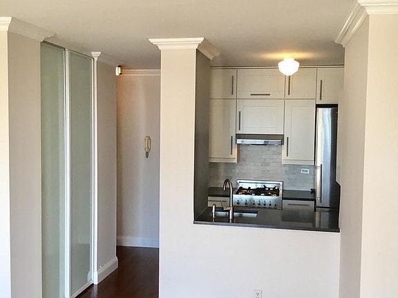 Available upon application approval. Sorry dogs and smokers are not allowed. This 24th floor renovated home is filled with beautiful light from oversized windows facing South. The views are open and you can see all the way downtown. The apt is quiet and overlooks a planted setback garden. There is a balcony off the living room. The kitchen is a lovely mix of hi-end stainless appliances, white cabinetry and stone counters. There are more than ample custom closets with stylish sliding glass doors - 2 works w/o a space. Amenities include a complimentary fully-equipped GYM and a resident's lounge with incredible views of the city overlooking Madison Square Park. Laundry is on every floor.