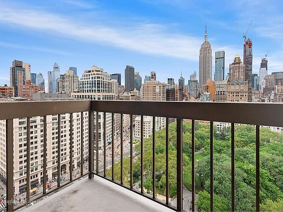 This beautiful and spacious 3 bedroom/2 bathroom apartment is located on the 25th floor of the luxurious Madison Green condo building on 5th Avenue and 22nd Street in the heart of Manhattan's Flatiron neighborhood. The apartment has a large living room/dining room with breathtaking unobstructed views of Madison Square Park and the Empire State Building. These views can also be enjoyed on your very own private balcony. The kitchen has been recently updated with new top of the line appliances. The master bedroom has excellent closet space along with it's own en-suite bathroom with dual sinks. Both the second and third bedrooms can comfortably fit queen size beds and additional furniture. Building amenities include a Bicycle Room, Garage, Garden, Fitness Room, Laundry Room on Every Floor, Lounge, and Common Storage Room.
