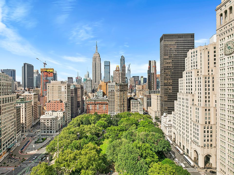 OPEN HOUSES BY APPOINTMENT ONLY! SORRY, BUT DOGS ARE NOT PERMITTED FOR RENTERS IN THIS BUILDING. Soaring above Madison Square Park, this high-floor two-bedroom, two-bathroom residence offers truly extraordinary, wide-open viewsuninterrupted panoramas that span the city skyline and showcase landmarks like the Empire State and Chrysler Buildings from every window. The layout is both efficient and comfortable, featuring a renovated kitchen with custom cabinetry, Corian countertops, and a paneled Sub-Zero refrigerator. Storage is plentiful, with a full wall of built-ins at the entry, a hallway walk-in closet, and two additional closets in the primary suiteone of them a walk-in. A private balcony adds a valuable indoor-outdoor dimension, perfect for taking in the scenery day or night. Located in Madison Green, a full-service condominium, residents enjoy a recently updated lobby with concierge and dry cleaning services, an ATM, landscaped courtyard, fitness center, playroom, and a rooftop lounge with sweeping city views. Positioned at the intersection of Flatiron, NoMad, and Gramercy, this home is surrounded by the best of ManhattanEataly, the Union Square Greenmarket, and countless top-rated restaurants, cafes, and nightlife spots. With the 6, N, R, and W trains just steps away, convenience and connectivity are second to none.