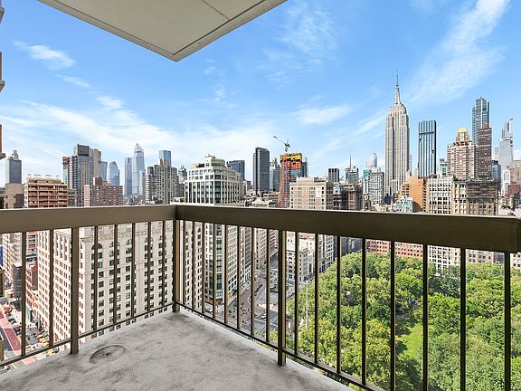 PLEASE CONTACT US FOR A VIDEO. A two-bedroom, two-bathroom home with a balcony perchedon a high floor with sweeping views from every window of Madison Square Park and of the city'smost iconic buildings including the Empire State and Chrysler Buildings. With a renovated kitchen including ample custom cabinetry, a paneled Sub Zero refrigerator, and Corian countertops, this phenomenalapartment also includes a plethora of closet space including a wall of custom storage upon entry, a hallway walk-in closet, and a master suite with two closets (one of which is an additional walk-in). This wonderful opportunity offers the perfect marriage of indoor/outdoor living. The Madison Green is a full service condominium with a stunning lobby complete with an ATM machine and dry cleaning/concierge service, beautiful furnished courtyard, fitness center, playroom, and rooftop lounge.In addition to Eataly, the Union Square Farmers Market, and some of NYC's hottest restaurants and nightspots being at your doorstep, several modes of transportation including the 6/N/R/W are just steps away, offering unparalleled lifestyle and convenience.