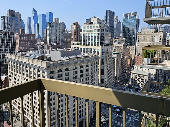 Bright 29th floor 1-bedroom with 6X9 balcony, facing west with open city skyline views from oversized windows. Renovated pass-through kitchen with breakfast bar, upgraded white tiled bathroom with new floor and vanity and 3 large closets, including a walk-in closet, and oak strip floors throughout. Luxury F/S building, centrally located on pretty tree-lined block, steps from Madison Square Park, Eataly, Shake Shack, Union Square farmer's market and Fifth Avenue shopping. Amenities include 24-hr doorman, concierge, resident super, 24-hr complimentary fitness center, Madison Club resident lounge with wifi, a laundry room on every floor, parking garage, renovated lobby with double-height ceilings and greenhouse windows looking onto the landscaped garden. Available September 12th. I am a resident broker.