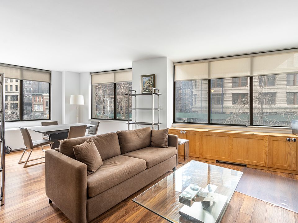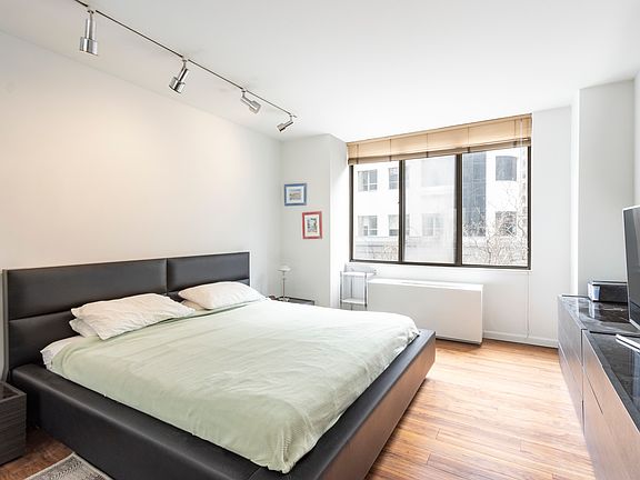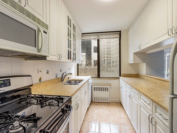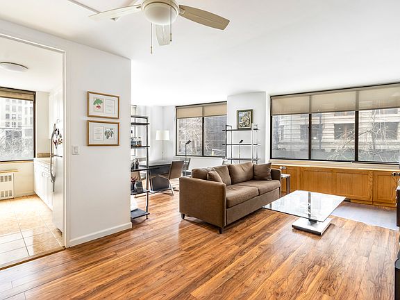 Bright corner apartment facing south and west! This is a 1 bedroom, 2 bathroom home with a beautiful white lacquered windowed kitchen and ample closets. The gracious layout has views overlooking the pretty magnolia trees on E. 22nd street. This is a luxury full service building, with laundry on floor as well as complimentary 24 hour fitness center. Sorry, no dogs. Available April 5th.