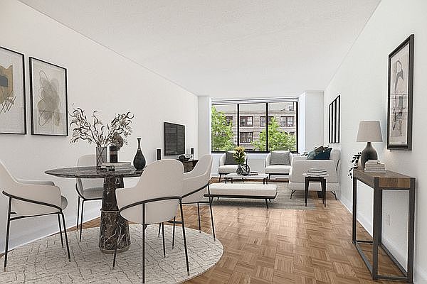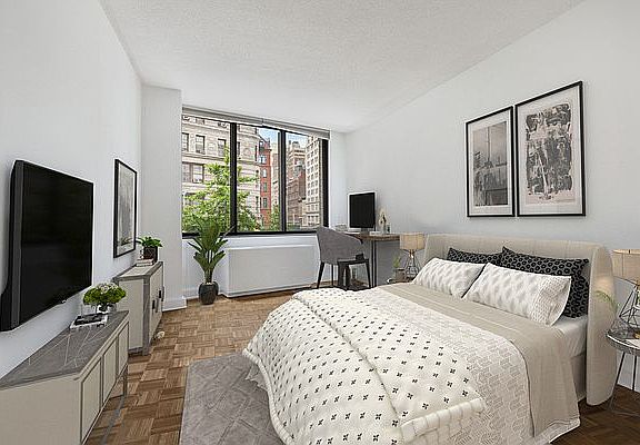 Enjoy leafy vistas from oversized windows facing west into the towering Ginkgo trees and the Broadway Promenade from this 1-bedroom home with spacious 19.5 X 11 living room and ample 16.5 X 10.5 bedroom. Cityproof interior windows create maximum quiet. Open pass-thru kitchen with breakfast bar, white cabinetry and granite countertops, fully renovated marble bathroom and three large closets including a walk-in closet. Madison Green is a luxury F/S condo, centrally located on prime Flatiron block, steps from Madison Square Park, Eataly, Shake Shack, Union Square farmer's market and Fifth Avenue shopping, convenient to the RWFM6 lines and crosstown bus. Amenities include 24-hr drmn, concierge, resident super, Valet for wash and fold and dry cleaning, ATM in the lobby, complimentary fitness center open 24X7, children's play room, Madison Club resident lounge on the 30th floor, landscaped garden and parking garage. Available 5/1/23. Sorry but dogs and flex walls are not allowed per building policies. I am a resident broker. Smoking allowed:No