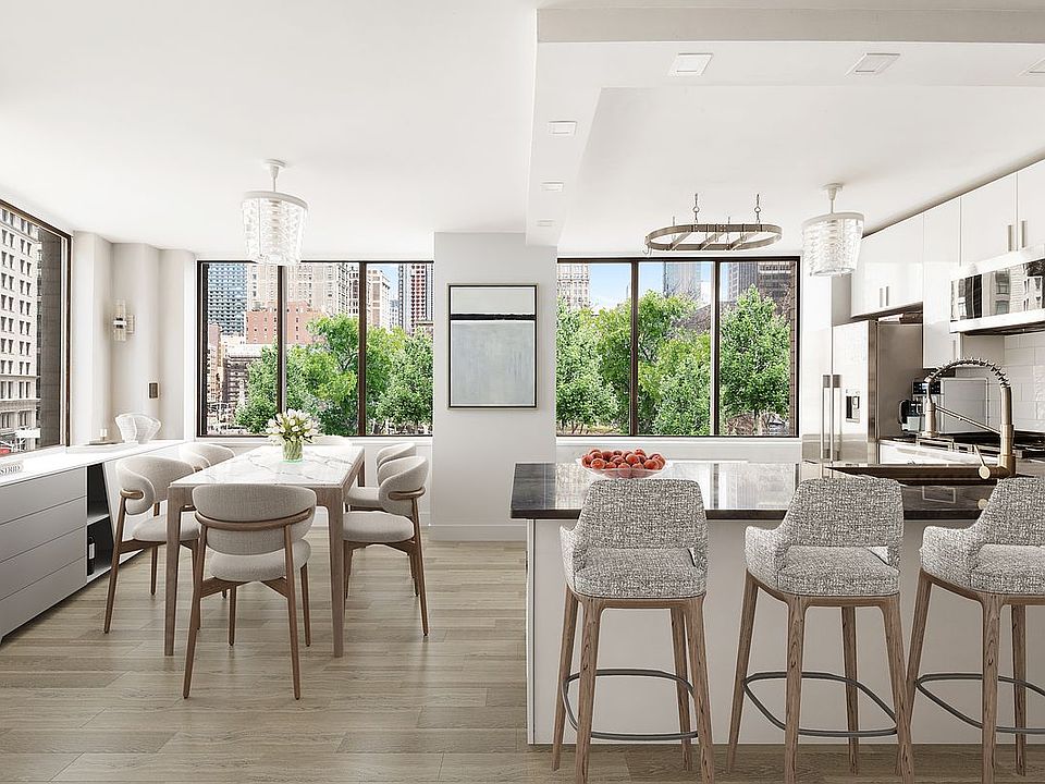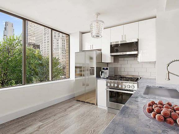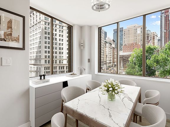 This stunning 2-bedroom, 2-bathroom apartment, complete with a balcony, offers views of Madison Square Park and the iconic Flatiron Building. This triple mint corner 2 bed, 2 bath home features 1273 interior square feet and a terrace overlooking the Flatiron building and Madison Square Park. The newly renovated apartment has an open floorplan, allowing for seamless dining, living and entertaining. Featuring split bedrooms and bathrooms, as well as an abundance of closet space, the J line within Madison Green is the largest 2 bedroom within the building with Empire State building views throughout. The windowed chefs kitchen features direct Madison Square Park views. It is equipped with Bertazonni & DCS stainless steel appliances, and features a breakfast bar with blue marble stone slabs and has heated floors for year round comfort. The bedrooms, generous in size, feature custom-built closets. Each bathroom, with floor-to-ceiling tile and fixtures from Porcelanosa, features radiant heat floors. A laundry room is conveniently located just several feet from the apartment door. There are Shluter heated Jac- Elan custom plank ceramic floors throughout. This stunning residence has Smart Home Technology as well as Wi-Fi enabled light switching and can be set up to work with Nest thermostats. The building, Madison Green at 5 East 22nd Street, offers a renovated lobby and elevators, 24-hour doorman service, concierge, porter, and a live-in super. Additional amenities include a courtyard with picnic tables, a fully-equipped gym with locker room and sauna, a resident lounge with a full kitchen and WiFi, a children’s playroom, dry cleaning and valet services, an ATM, bike room, and storage lockers. The location is in the heart of one of NYC’s vibrant neighborhoods. Right next to Madison Square Park, across from the historic Flatiron Building, and surrounded by shops, restaurants, and cafes. Grocery shopping is convenient with Whole Foods, Trader Joe’s, Fairway Markets, and the Union Square Farmer’s Market nearby. The R/W/6/F/M subway lines are right outside your door. Pets are welcome. Please note listed taxes reflect primary ownership.