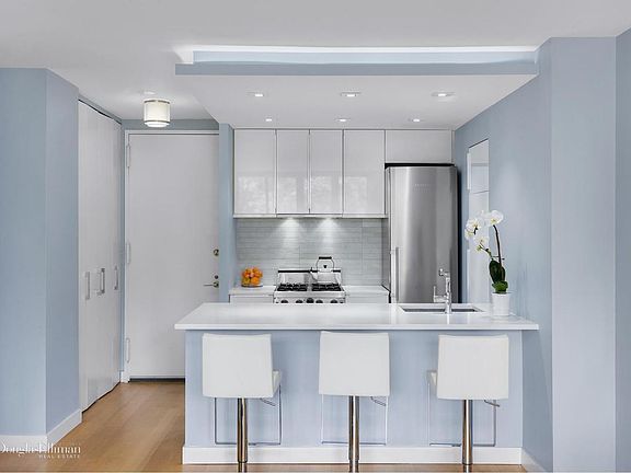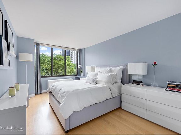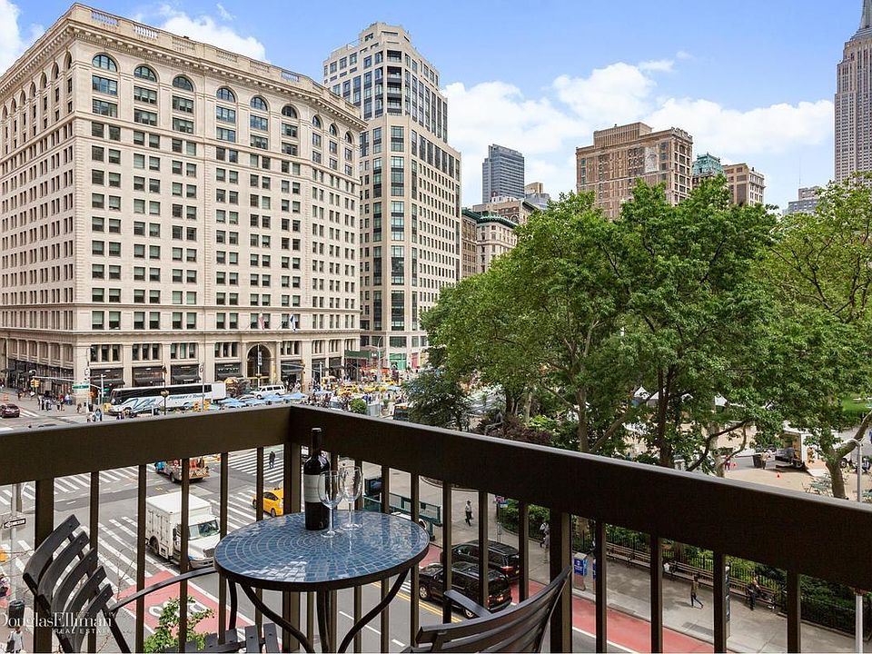 MINT RENOVATED PARK-FACING UNIT! Triple mint, fully renovated and highly coveted one-bedroom direct Madison Square Park-facing condominium with a private terrace at the luxurious full-service Madison Green! This residential haven in the heart of Flatiron receives plentiful natural light and showcases unequivocal picturesque, peaceful tree-top views amidst stunning city scenery, with a front-row seat to the Empire State Building, Chrysler Building, Clock Tower and striking city skyline. A thorough gut-renovation with superlative finishes span the residence, from behind-the-walls electrical replacement to wide rift and quarter sawn white oak Brazilian flooring. The gorgeous chef's-quality kitchen is inspiring, styled with custom recessed and cove lighting, quartz countertops, a KWC faucet, Franke Finish under-mount stainless steel sink, a built-in pantry for ample storage, and high-end stainless steel appliances including a Liebherr fridge, Miele built-in ventilation hood, Viking open burner range and Miele fully-integrated dishwasher for the serious cook. Host guests in the large living/dining room brightened by floor-to-ceiling windows and glass sliders to the outdoor terrace oasis. The elegant bathroom is sleek and modern, graced by SIDLER Swiss cabinets with integrated lighting, concealed soft-close hinges and double-sided mirror doors. Other indulgences are Porcelanosa faucets, fixtures, shower enclosure and tiles, a Toto Dual-Max Flushing System, and programmable wall mounted towel warmer. Additional touches include custom window treatments with blackout blinds, solar shades, a retractable screen door, Lutron lighting on dimmers, and a customized interior closet system with birch wood trimmings. Located on Flatiron's best tree-lined block at the foot of Madison Square Park, the Madison Green condominium offers desirable building amenities that include a renovated lobby, renovated elevators, a 24-hour doorman/concierge, live-in super, 24 hour garage, fully equipped WiFi-enabled gym with locker room/sauna, a lovely courtyard, residents' lounge with full kitchen and WiFi, children's playroom, an ATM, dry cleaning/valet, bicycle room, storage lockers, plus laundry on every floor. The central location at the intersection of Broadway and 22nd Street is steps from the distinctive Flatiron Building, minutes from Fifth Avenue Shopping, the Union Square Farmers Market, Eataly, Whole Foods, Trader Joe's, Fairway, and some of NYC's best restaurants. Access to transportation is super convenient with the R/W/6/F/M subway lines just outside the door. Pets welcome.