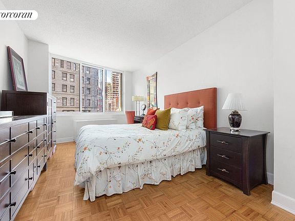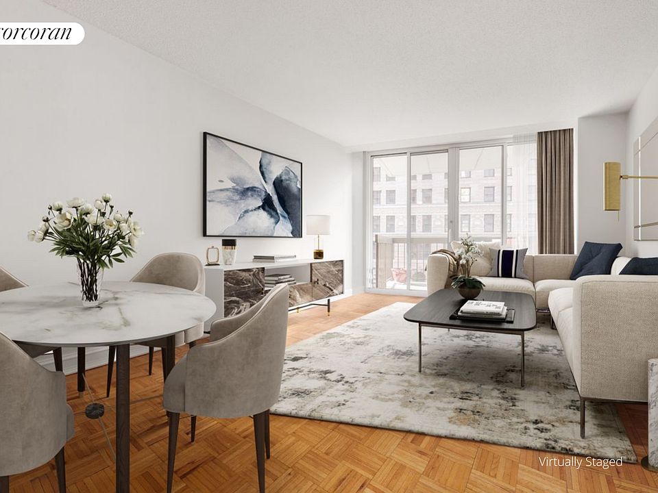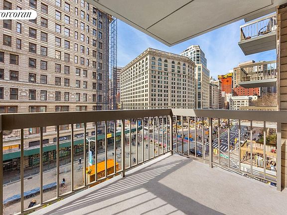 Experience living with the world-famous, iconic Flatiron Building right outside your windows. 5 East 22nd Street, 6H is a west-facing one-bedroom apartment with a balcony. The residence features an updated, open, and spacious living and dining area, along with a kitchen equipped with a breakfast bar and stainless-steel appliances. The bedroom comfortably fits a king-size bed. There are three closets in the unit, one of which is a walk-in. A laundry room is conveniently located on every floor, with this unit's just across the entrance. The Madison Green condominium is situated on a gorgeous, tree-lined corner block. Amenities include a 24-hour doorman/concierge, live-in super, 24-hour garage, the Madison Club-an exclusive 30th-floor resident lounge with stunning views overlooking Madison Square Park, a full kitchen, and WiFi-a gym with locker room/sauna, children's playroom, in-house ATM, valet for dry cleaning and wash-and-fold services, and a stunning double-height lobby. Madison Square Park, home to the original Shake Shack, is just across the block. Eataly and many dining and shopping options are within reach in this amazing neighborhood. Enjoy convenient access to both uptown and downtown subway lines. Located in the heart of the Flatiron District, sandwiched between Gramercy Park and Chelsea, and just minutes from Union Square Green Market. Available from September 27, 2024, pending condo lease application approval.