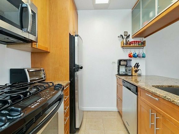 Please note that Tenant is responsible for paying a one month broker fee ($3,400) and approx $1,125 in one time board application fees. Cooking gas, water, and all building amenities are included in the rent. This is your chance to rent a renovated, spacious one bedroom apartment in a full luxury building for only $3,400 per month. When you enter the unit to your immediate left, you are greeted by a renovated kitchen with maple cabinetry, granite counters, stainless steel appliances with dishwasher and built-in microwave, and a pass through with a breakfast bar- perfect for entertaining. To your right, there is a coat closet with built-in shelving. Keep straight and enter the spacious living room, which measures 19.5x11 with grand windows and southern exposure. The current tenant has an L-shaped sofa, entertainment center, coffee table, lamps, and more. The king-sized bedroom is also unique, measuring approx 15.9x11x10, the room can accommodate a queen-king bedroom set and features a double closet. There is also a California walk-in closet outside of the bedroom. The bathroom is newly renovated with a granite sink. Courtyard view and countless other features- this a place to call home! Building amenities include doorman, courtyard, roof deck, laundry facilities on every floor, ATM machine, and more!