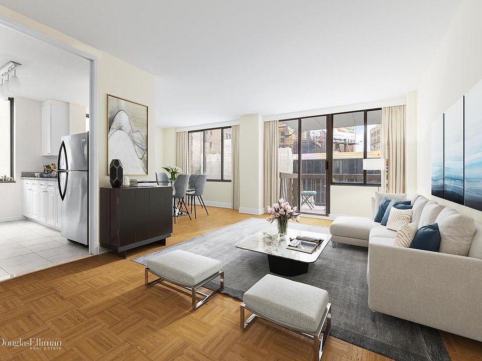 AMAZING VALUE Corner two bedroom, two bath residence with 11 windows & private balcony. The sunlit living and dining room has six sun-blasted South facing windows, and four East facing windows with floor to ceiling windows. From the lovely private balcony, you have a panoramic view overlooking the landmark flat iron building. One of the most sought after condominiums due to its low monthly carrying charges, expansive amenities & prime location. The windowed open kitchen flows into the double windowed corner formal dining room. Custom white shaker cabinetry, polished granite countertops that provide a large space for meal preparation and dining. Brand new stainless steel appliances including dishwasher & built in microwave. A gracious foyer allows fabulous flow to all the rooms and a division of spaces while opening up seamlessly to the expansive living and dining room area for entertaining. The spacious bedrooms are separated nicely from the main entertaining space and have a windowed en suite and an adjacent windowed bathroom. There are five California built in closets of which one is a walk in, located in the master bedroom. Custom oak wood cabinetry was designed to hide the HVAC units in the bedrooms with one being a built in desk to optimize space. The lobby was recently renovated and has views of the garden through a wall of glass. Full services include an on-site building manager, resident manager, and 24-hour doorman, and valet, laundry on every floor, storage cages, bicycle storage, garage, children's playroom, complimentary fully equipped gym and a resident's lounge on the 30th floor with those amazing views. Fifth Avenue shopping, Eataly, Trader Joes, Whole Foods, Fairway, Union Square Farmers' Market, Madison Square Park, many top restaurants along with all public transportation nearby. Pets are welcome.