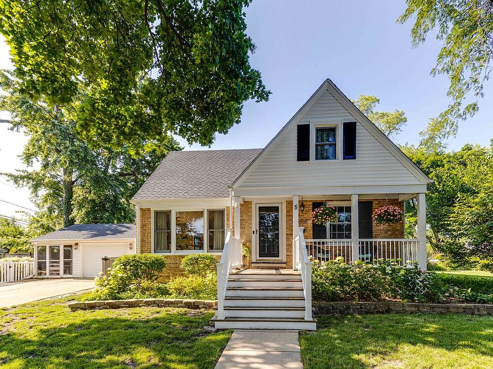 Perfection in Palatine! This charming Cape Cod located in downtown Palatine boasts a welcoming porch, where one can envision leisurely afternoons or evenings! Upon entry the first floor features hardwood floors and classic architecture throughout. A spacious, sun-drenched dining room leads you to the kitchen, complete with stainless steel appliances (New Dishwasher 2023), eat-in breakfast nook, and access to your own private composite deck. Off the kitchen is the cozy family room, with a brick, gas log burning fireplace and French doors that lead to the professionally landscaped side yard. Rounding out the first floor is the highly sought after home office/4th bedroom and a coveted first floor bedroom, complete with an adjacent full bath. Upstairs you will find two generously sized bedrooms. The remodeled primary suite has hardwood floors, wood shutters and a walk-in closet of your dreams! The lower level is fully finished with an electric fireplace, built-in cabinets and full bath. Plenty of storage and laundry complete the lower level. Spend lazy summer days or cool fall nights in the oversized, enclosed three seasons room. Looking for a private retreat? Head to the finished shed to catch up on your favorite Netflix series! Walk to Jewel, Metra, shops, restaurants, coffee, farmers market, and festivals! Fremd High School. New Roof (2023), New Vinyl Siding (2023) New Gutter (2023) Hot Water Heater (2021) Composite Deck (2020) Air Conditioner (2019) Don't miss the opportunity to make this dream home yours!