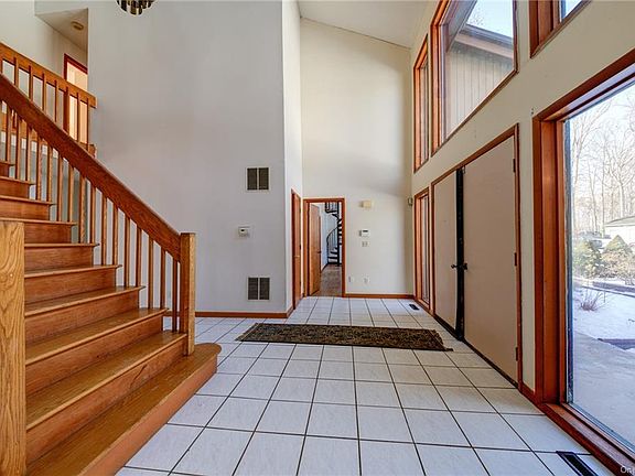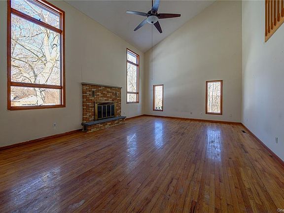 Bring your paintbrush and make this expansive Contemporary in a quiet, walkable neighborhood yours! The homes boasts an abundance of natural light, cathedral ceilings, and extremely spacious rooms throughout. A large foyer greets your guests, opening to the living room with fireplace and 2nd floor bonus loft. The eat-in-kitchen has a center island, formal sitting area with second fireplace, and sliders to expansive deck overlooking the backyard. The first level also offers a private guest suite/office with full bath. The finished basement (approximately 2,000 square feet not included in total square footage) with separate entrance and full bath provides endless opportunity- enough room for recreation, private office or fitness room, and storage. Live stress free with Central AC and brand new hot water heater. Five minute drive to Fishkill shopping and Route 9.