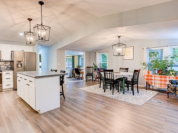 Welcome to Mountainvale Village a lovely 55 and older community. Upon entering this home, you'll immediately notice the sense of spaciousness, thanks to the lofty vaulted ceilings and the inviting laminate flooring. The combined living and dining area seamlessly connects to the modern, updated kitchen, featuring a generous island, contemporary lighting fixtures, a stylish tile backsplash, and stainless steel appliances. Adjacent to this space, you'll find a cozy family room or den with sliding doors that open onto a lovely back deck, revealing a tranquil and private backyard. This single-story layout offers the convenience of two bedrooms, along with 1 ¾ baths and a laundry area—all thoughtfully designed to make daily living a breeze. To top it off, there's ample storage space, including a one-car garage and two storage sheds in the backyard. Please note that pets are welcome with certain restrictions in place. Don't miss the chance to see this wonderful property today!