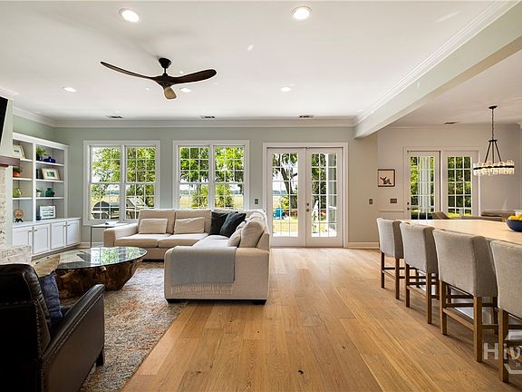 This stunning, extensively renovated marsh front home offers rare privacy on 1.16 acres in a gated community with deep water dock access. With 3,750 sq ft of beautifully designed space, it features 3 spacious bedrooms, 4 full baths, and a newly reimagined kitchen with high-end appliances and thoughtful finishes. Oversized windows frame sweeping views of the Vernon River, flooding the home with natural light. The first-floor primary suite is a true retreat with a marble spa bathroom & custom walk-in closets & an adjacent library/den. Upstairs, two ensuite bedrooms and a bonus room provide comfort and privacy for guests. Step outside to a screened porch, patio, & a backyard oasis created for both quiet mornings and unforgettable evening sunsets. With a new roof, updated systems, and elegant design throughout, this home is move-in ready, your refuge in the Low Country, where nature, comfort, & tranquility come
