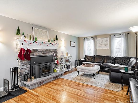 Your new home for the holidays is this picture perfect 4 bedroom colonial in a highly desirable Broad Brook neighborhood. You will love the updated eating space kitchen featuring granite counters, tiled backsplash, and stainless steel appliances. Relax in the formal living room with handsome stone fireplace with wood stove insert and custom wood mantel. The formal dining room has a built-in hutch and hardwood floors as does the entire home. Upstairs you will find 4 bedrooms and the full bath nicely dressed in bead board and tile. Not to be missed is the versatile three season room overlooking the large, (nearly 1 acre) flat yard with storage shed, patio and firepit for social distance happy hours and smore eating contests. There is a full, unfinished basement with a bulkhead that could be easily transformed into a man cave, home gym or lower level family room. Other bonuses include a cute powder room with vessel sink, two car attached garage, central air, replacement windows and updated 200 amp electric service. Nothing to do but move in and enjoy. ALL HIGHEST AND BEST OFFERS ARE DUE IN BY 5:00 PM ON MONDAY, DECEMBER 14th. PLEASE SUBMIT OFFERS ON A GHAR CONTRACT