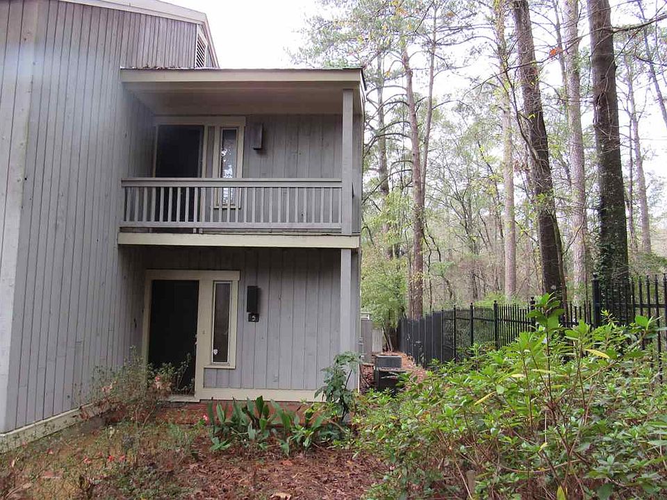 Tax rolls show 2014 sq.ft. End unit in the back next to the woods. Very private. Heart pine floors down, carpet up. Granite counters in the kitchen with ceramic back splash. Extra room for office/study with built-ins. Balcony on 2nd floor. Large private patio that looks into the woods. Attached 2 car garage. Taxes are without homestead. Refrigerator, washer and dryer remain.