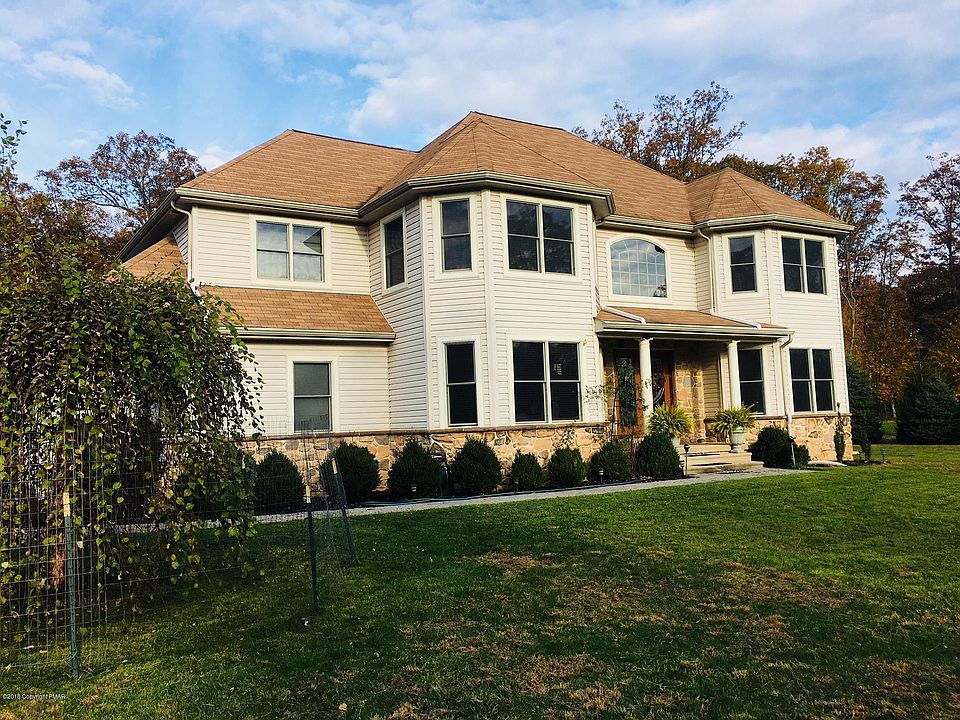 Exceptional Home located on 1 Acre professionally landscaped lot only 15 min to NJ and Martz direct NYC transportation, featuring Soaring 2 Story Entry Foyer leading to large ultra modern Kitchen with Cherry Cabinets, Granite Counter tops, SS Appliances and Kitchen Island, Family room with Gas- Brick Faced Fireplace, Formal Dining Room. Home offers 4 Bedrooms, 2.5 Baths, Master Bedroom with Master Suite w/Whirlpool Tub and walk-in closet, Oak Hardwood Floors throughout whole house, central A/C, 2 Car Garage, above ground Swimming Pool with new Deck. Property is only 15 min to Downtown Stroudsburg Dining & Shopping, Schools, University, Medical Centers. Close to Ski Resorts, Great Wolfe and Kalahari Water Parks, Premium Outlets.Call for your private tour today!