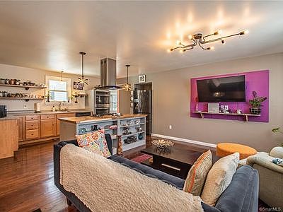 Welcome to this beautifully updated 3-bedroom, 2-bathroom single-family home at 5 Eaton Trail, Wallingford, CT. Spanning 2,655 sq ft, this residence underwent a comprehensive renovation in 2018, transforming it into a modern and inviting space. The open-concept layout seamlessly blends the living, dining, and kitchen areas, creating an ideal environment for both relaxation and entertaining. The chef-inspired kitchen features a double oven, gas stove, and butcher block countertops, perfect for preparing meals and hosting gatherings. Adjacent to the kitchen, the formal dining room boasts a large bay window, offering picturesque views of the surrounding wooded area. The home includes two garages: an attached garage with direct access to the basement and a detached 3-car garage, providing ample storage and workspace options. The fenced yard offers privacy and space for outdoor activities. Key Features: 3 Bedrooms, 2 Bathrooms 2,655 sq ft of living space Open-concept design with modern finishes Chef's kitchen with double oven, gas stove, and butcher block countertops Formal dining room with bay window Attached garage with basement access Detached 3-car garage Fenced yard Lease Terms: Rent: $3,150/month Lease Duration: Minimum 2-year lease Security Deposit: $3,150 Pet Policy: Pets allowed with refundable pet deposit (amount to be determined) Tenant Responsibilities: Utilities and lawn care Note: Colors and light fixtures may differ from the pictures. Lease Length: Minimum 2-year lease ideal for renters looking for long-term stability. Monthly Rent: $3,150 Move-In Costs: First month's rent + security deposit ($3,150) + refundable pet deposit if applicable. Pets: Cats and dogs allowed. Refundable pet deposit required; breed/size restrictions may apply. Utilities & Maintenance: Tenant pays all utilities and is responsible for lawn care. Parking: One attached garage + one detached garage included.