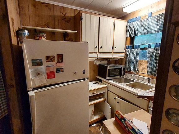 If you've been looking for a weekend getaway or a hunting cabin, look no further - One of the Bear Mountain originals in need of some TLC! 1200 sf cabin with a full basement, oil HWBB heat, propane back-up whole house generator, 3 Bedrooms, open Kitchen/Dining/Living area, Full bath, Florida room on almost 2 acres. Largest bedroom includes a sitting/office area and wood burning fireplace. Dining area also includes a wood burning fireplace. This is an estate and the sellers are working on cleanout - looking for an as is sale. No knowledge of septic location - outtake is on the north side of the house, so it may be within 100 feet of well.