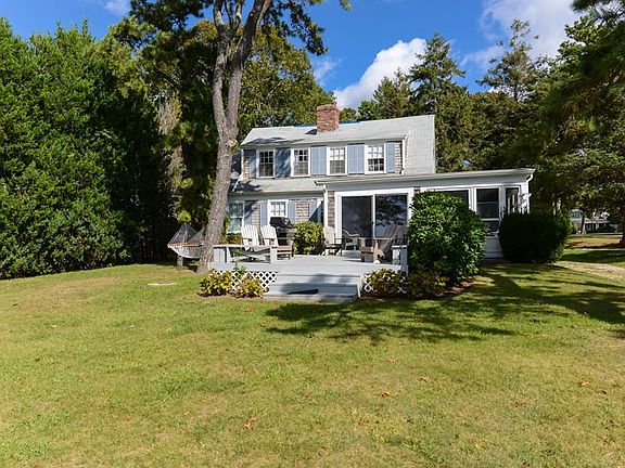 Privately sited on nearly an acre, this quintessential beachfront property offers sweeping views of West Bay, rolling lawns, and the allure of Old Cape Cod. The charming home welcomes with its warm interior, fireplaced living room, large eat-in kitchen with adjoining butler's pantry, three cheerful bedrooms, and classic screened porch. Enjoy cookouts or entertaining on the waterside deck and summer activities on the expansive lawn. Conveniently located, the property is a short stroll to the Osterville Farmer's Market and the village center for shopping, dining, and the Osterville library. The Wianno Yacht Club, several marinas, and the Wianno Golf Club are in close proximity to this lovely seaside home.