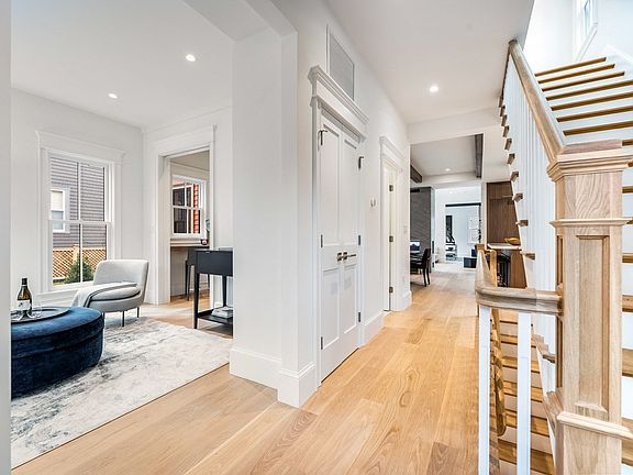 A Mid Cambridge masterpiece from Unison Design Group. Revel in the meticulous attention to quality and craftsmanship evident throughout this newly built home, conveniently located between Harvard and MIT. The main living area features a dynamic layout accentuated by a double-sided gas fireplace and a floor-to-ceiling wall of windows overlooking the private bluestone patio and garden. Custom black walnut bookcases add a touch of elegance to the dining room and family sitting area. The chef's kitchen, complete with a center island and top-of-the-line Thermador appliances, is a culinary haven. Upstairs, three bedrooms, two baths, and laundry await, including a sumptuous primary suite with a cozy sitting area and ample walk-in closet. Ascend to the light-filled top floor with skylights and a welcoming roof deck. The expansive lower level features a larger family room + separate auxiliary apartment with its own entrance. This home is a rare find and the embodiment of modern sophistication.