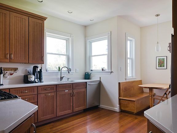 De-Leaded! This 5 bedroom, 2 full bathroom home on a dead-end street near Harvard Square checks all the boxes! 8 rooms within 2,022 SF on two levels and lots of natural light. In-unit washer and dryer. Private use of a 2+ car driveway. The lush and expansive back garden is professionally landscaped. Many original moldings and details were maintained when the unit was renovated in 2013. Beautifully updated kitchen with stainless steel appliances, granite countertops, gas cooking, and an eat-in dining area. The main floor has a living room, dining room, kitchen, full bath with tub, two bedrooms and direct access to the private porch. The top floor has three additional bedrooms and a full shower bath. 5 Ellsworth Park, Unit 2 is in a superb location equidistant to Harvard and Central Square and close to Inman Square with all the shops, restaurants, grocery stores, parks, libraries, schools, and public transportation Mid-Cambridge has to offer. Lease start: August 1st. First, last, security and one month's broker fee.