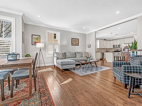 Conveniently located moments from Davis Square, this 2 bedroom, 3 bathroom lower duplex checks all the boxes. Enter into the spacious living room with soaring ceilings and plenty of windows that allow natural light to flood in. A tiled barn wood wall with electric fireplace creates a beautiful focal point of the space. Entertain your guests around the kitchen's oversized island and keep kitchen tools out of sight with the ample cabinet space. With two spacious bedrooms on the main floor, the primary bedroom boasts an ensuite bathroom and oversized closet. Just down the stairs you'll find a completely finished lower level with additional living space, bonus den/office full bathroom and built-in bar! Serenely secluded from the upper floor, you can make this space your own, from the ultimate work-from-home set-up to a relaxing oasis for your guests. The cherry on top to this home is a private, fenced in patio and yard, a short commute to the Red Line and three off street parking spots!