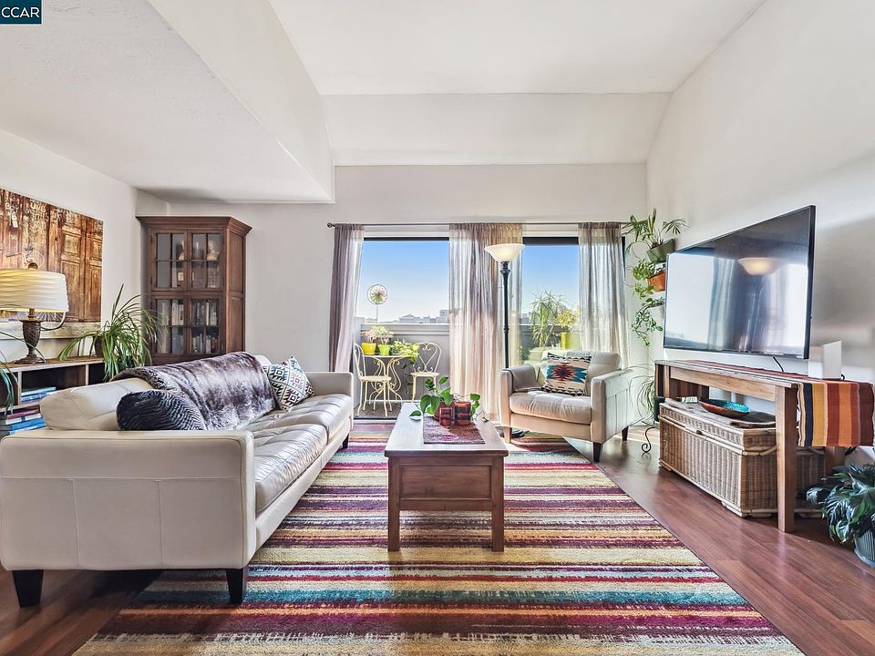 Modernized 2 bed/2 bath 3rd floor condo on Jack London’s waterfront. Polished laminate floors guide you through public spaces. The kitchen features updated cabinetry and chef’s appliances, with a convenient pass-through to the dining area, perfect for effortless entertaining. The living room, with its soaring sloped tray ceiling, opens to a generous balcony waiting for your personal touch. Both bedrooms are spacious, well-lit, and feature walk-in closets, the primary with an en-suite full bath. Ample storage is available throughout the unit, extending to a dedicated locker in the secured garage, which also includes one parking spot. Resort-style amenities are at your fingertips. Start your mornings with a swim in the pool, soak up the sun on the patio, or challenge a friend to a game of tennis. After a long day, relax in the hot tub, rejuvinate in the sauna, or hit the fully-equipped gym. With private access to the marina, you’ll enjoy a touch of exclusivity that’s hard to find elsewhere. Living here means everything you need is within reach—dining and recreation at Jack London Square, Oakland’s best breweries in any direction, the Sunday farmers market, plus Amtrak, BART, and the ferry.