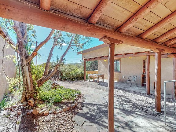 Artist retreat in the East Mountains. This one-of-a-kind, charming home has 3 bedrms,1 & 3/4 bath on 1 acre of trees, meadow and views in Sandia Park. Enter into the courtyard, up the stone path to your home.A portion of the home is currently transformed into a studio apt w a tenant. Property also includes a studio building, one car garage and separate work shop. Stone pathways lead to serene sitting areas scattered with art pieces. 2 covered porches for quiet enjoyment.