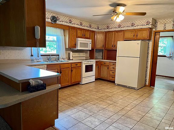 This 1 owner all brick home has over 2000 sq. ft, 3 bedrooms and 2 full baths. Large family room with fireplace that is open to kitchen and has sliding doors leading to the covered patio. Kitchen has oak cabinets, double countertop with breakfast bar area and is complete with appliances. Primary bedroom is large and features a shared full bath and double closets. Two additional bedrooms on the other end of the house with a full bath. Large laundry room with washer and dryer. Plenty of closet space in this home. Bathrooms have been updated with double vanities and tub/showers. 2 car attached garage situated on a 1 acre lot with mature trees. Neighboring Foundation Park. Located on a dead-end street.