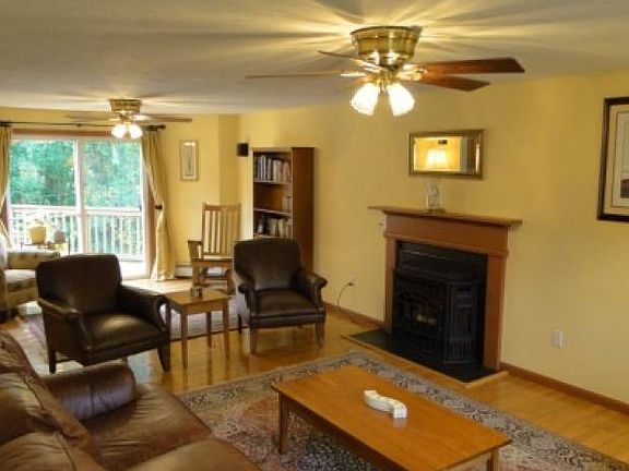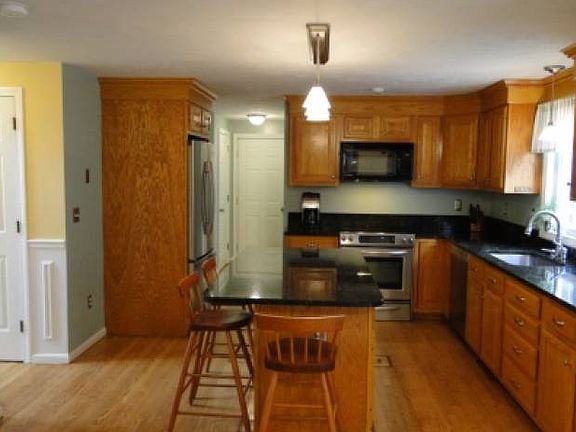 Well maintained 3-4 Bedroom colonial in desirable cul-de-sac neighborhood. Loaded with recent improvements such as ornate moldings, wainscoting, gleaming hard wood floors throughout, remodeled kitchen boasts upgraded cabinets, tiled backsplash, granite counters and SS appliances with generous dining area with sliders to large deck. Open kitchen floor plan flows to fire-placed living room - perfect for entertaining and family togetherness! Finished walkout lower level offers media room, game area, work out area, home office/workshop and access to fenced play or pet area under deck. Updated baths with high end cabinets, tiled floors, granite countertops and newer faucets. Master bedroom with full bath and walk in closet. All bedrooms have ceiling fans. Home wired for generator hook up. Beautiful and efficient Quadra-fire pellet stove in living room makes whole home cozy while conserving heating oil! Minutes to 395.