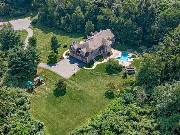 Expansive custom home, beautifully sited at Stone Row at Hickory Run. Luxury appointments include HardiPlank & stone siding, 2-story Foyer, sun filled open floor plan, large rooms, French doors, oak floors, classic moldings. Two lavishly appointed Primary Suites. Two- story window filled FR soaring 2-sided FP open to Primary Suite 1. Lovely country kitchen custom cabinetry, granite countertops, wet bar, island & pantry. Breakfast area opens to grounds pool, spa, dining gazebo. Gracious formal rooms. Main level Media Rm. Multiple offices. Upper level 2nd Primary Suite, 3 add'l En Suites, Playroom/Lounge, Office. Finished Lower Level presents Recreation, Media, & Craft Rooms, Gym, Office, full Bath. A stairwell ascends to the 4-car garage. The bucolic setting borders 70-acres of preserved land.