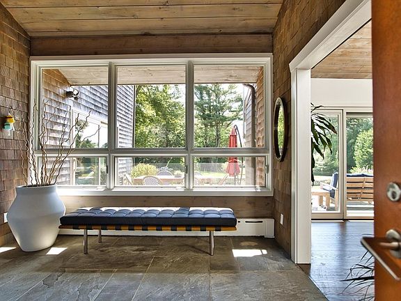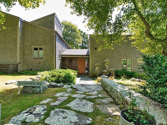 Designed by renowned architect Ted Moore, this mid-century classic is a true Westport Point masterpiece, presiding over nearly three acres with heated swimming pool, tennis/pickleball court, guest house and distant views to Westport Harbor. The heart of the home is a spectacular kitchen/living/dining room with cathedral ceiling and sliders to a bluestone terrace. Across the entrance loggia is a formal dining area with adjacent cozy fireplaced living area. Architecturally unique staircase leads to primary suite wing, as well as three additional bedrooms, full bath, and office/loft. The adjacent versatile guest house is anchored by a central brick fireplace and offers an additional bedroom, bath, full kitchen, and a side wing with kitchenette and powder room. Outdoor shower, gardens, rolling lawns, distant water views...a truly unique property that has it all! The beautiful location affords the ultimate in privacy, while being only minutes from beaches and all Westport has to offer.