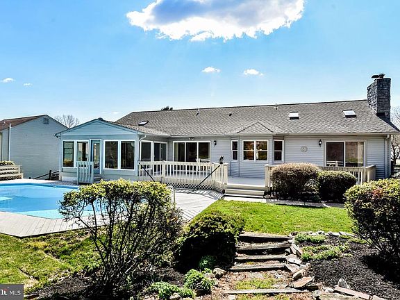Located in the esteemed Christianstead community of Newark, perched on a sprawling parcel, is 5 Farm House Road, a gorgeous 4 bedroom 3 bathroom ranch. The beautifully landscaped lawn offers charming curb appeal and makes this house a neighborhood standout. Upon entry into the foyer, gorgeous hardwood floors gleam with the flood of natural sunlight as you step into a home with a wonderful contemporary blueprint. The layout offers the best of both worlds ~ a great room concept replete with casual dining, a spacious island with additional seating for four, and a stylish family room as the central hub of activity ~ while a formal dining room and living room present the perfect opportunity for added overflow entertaining. The kitchen is a chef~s dream with plenty of cabinet space, and stretches of long granite work overlooking the light-filled family room~s stone fireplace and expansive deck and pool area. A fantastic feature of the house is the impeccable backyard and expansive deck that opens the living space to an outside oasis. The right side of the house is dedicated to the family~s private quarters, including a large master suite with enclosed private porch, an organized walk-in closet, and private bath with double vanity, tub and shower stall. The secondary bedrooms are ample in size with double closets. Not to be overlooked, a fully finished basement spanning the entire first floor makes for a perfect playroom, teen hangout, hobbyist~s delight, or home office. Last, an oversized double garage offers modern convenience that you~ll love coming home to. There is so much to see both inside and out, so take a look around. We know you~ll love this wonderful property. Welcome Home!