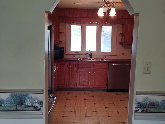 Beautiful 1.5 story, single family home with 3 BDRM, 2 FULL BATH,1 car garage, carport, front porch, large kitchen, large dining room with built in corner cabinet, built in cabinets in foyer area, living room with propane fireplace. Tons of character and space. This home is a "must -see." Finished basement with full bath, & laundry room with washer & dryer. Kitchen has a refrigerator, dishwasher, & stove. Plenty of off-street parking. Covered rear deck overlooking a stream is perfect for relaxing or entertaining. The garage has a workbench and tons of drawers and cabinets for storage. Additional unfinished storage room or work area in the basement with outside access to driveway. OPEN HOUSE THIS SUNDAY, DECEMBER 18, FROM 1PM TO 3 PM. FEEL FREE TO STOP IN AND TAKE A LOOK AT THIS CHARMING HOME !
