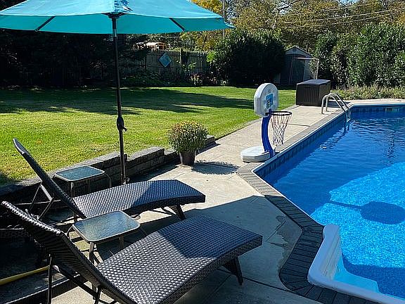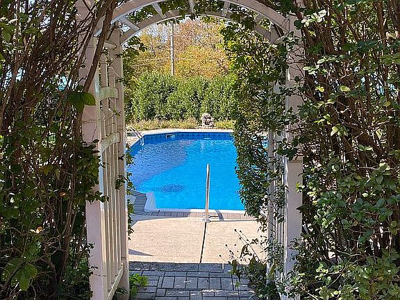 Charming carriage house nestled at the end of a quiet cul-de-sac in south Baldwin and just a 40 minute train ride to New York City and 20 min car ride to JFK Airport. Oversized fully landscaped property with heated in-ground pool, large grassy area for playtime, multiple patios and tall privacy trees that line the fenced in yard. This spacious 11 room home includes large sunken den with gas fireplace, living room with custom built-in bookcases, dining room, kitchen with walk in pantry, 3 bedrooms, office/4th bedroom, 2 full bathrooms, and huge great room with second gas fireplace that leads outside to the beautiful park-like yard. Plenty of storage including 2 large attics with pull down stairs, basement for storage, attached garage, and 2 sheds. Updated electric to 200 amp service in 2018. New pool heater in 2018 and new pool liner in 2017. In-ground sprinklers, ADT alarm system and Ring doorbell. Views of Silver Lake Pond. Walk to train. Close to plenty of restaurants, shopping, park, and ocean beaches. Move in ready. Masks required.