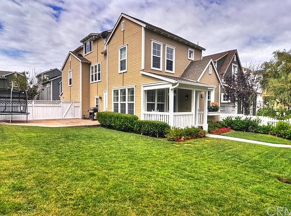 Premium Surrey Farm lot and home with beautiful hill and trail views. Walk up to your expansive yard and relaxing porch ready for you to enjoy the evening sunsets, summer BBQ's and morning coffee. This charming 4 bedroom 3 bath home has a wonderful open kitchen with granite counter tops, glass inlay white cabinets, and plenty of cabinet space. Open family and dining room with planation shutters, built-ins in the family room and crown molding. Faux wood floors encompass the stairs, secondary level and secondary bedrooms. Secondary bathroom has been updated with stone counter tops and upgraded wood mirror. Large master bedroom with wonderful tree top views, walk in closet and completed with a large soaking tub, custom stone shower and stone counter tops with dual sinks. The third level accommodates the 4th bedroom or lovely office and or play room. The yard is expansive and can accommodate a pool if desired with complete privacy. Ladera Ranch amenities include high speed internet, award winning schools, 12 pools, 5 clubhouses, tennis, basketball courts, water parks, skate park, dog park, hiking trails and community events. Custom built ins and cozy gas fireplace make the family room warm and inviting.