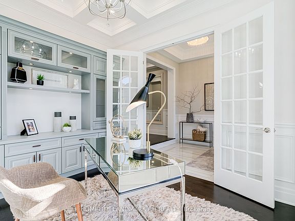 Luxurious 3 Car Garage Detached in prestigious "Fountainbleu" Community. Stone Front w/ Exterior Pot Lights. Double 8' Front Door Entry w/ Covered Porch. 10' Ceiling on Main & 9' on the 2nd. $$$ Over $500K Upgrades: Hardwood Flooring, Pot Lights & Wainscotting throughout. B/I Speakers on Main & Master. Waffle Ceiling in Master & Office. Extended Kitchen Cabinet w/ Canopy & Valance Lighting, Large Center Island & B/I App, Granite Countertop, Backsplash, Servery & Large Walk-In Pantry. Large Breakfast Area W/O to Vinyl Deck with Glass Railings. Circular Hallway w/multiple Art Niches & Elegant floating Spiral Staircase w/Iron Pickets & Open to above Skylight. All upper 4 Bdrms with Ensuite Bath & W/I Closet & Organizer. Primary Bdrm w/10' Tray Ceiling, 2 way Gas Fireplace & Large Sitting Rm. Marble Vanity Top in all Baths. Fin. W/O Bsmt by Builder with the 5th Bdrm, Rec, Game Rm, Wet Bar & 4 Pcs Bath, Home Theatre w/ Surround Sound System, Wall Sconce Lighting & Insulated Double Doors. Steps to Park & Tennis / Basketball Court. Close to Lake Wilcox, multiple Golf Courses, Mins to GO Train station, Hwy 404, Supermarkets & Shopping Plaza..
