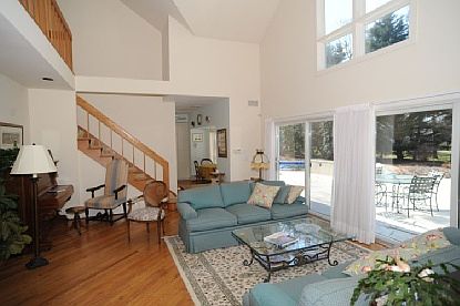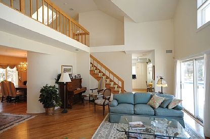 This four bedroom, four and one-half bath home is set on a lushly landscaped property located on a lovely cul de sac. The home is bright and features vaulted ceilings. There is a large living room, a formal dining room and a good sized home office. The master bedroom suite is on the first floor. Upstairs there is a large open loft living space and two additional bedrooms. The property includes a detached three car garage with a studio apartment above. The grounds include a spacious deck area and a pool surrounded by a brick patio. A path at the end of the cul de sac is your deeded right-of-way to your deep water dock, complete with private boat slip.