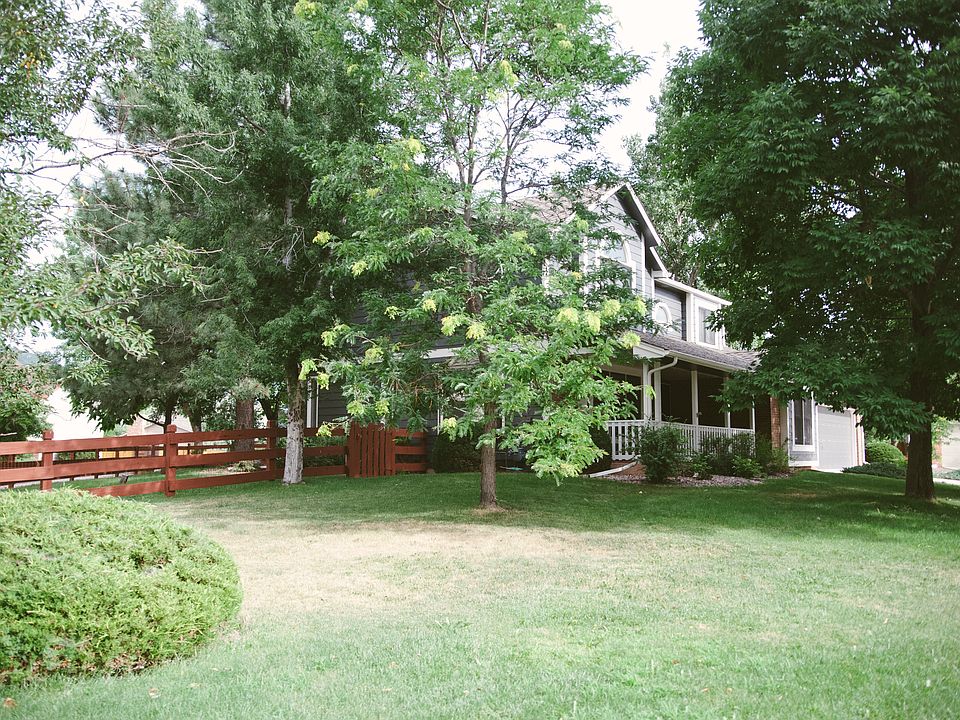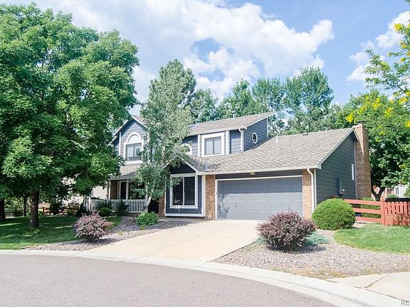 Large corner lot with lots of trees on friendly cu-de-sac in highly sought after Ken Caryl Valley. 3 bedrooms + office/4th bedroom, 2 3/4 baths. Kitchen with granite countertops and stainless steel appliances opens into eating area and family room with vaulted ceiling and gas fireplace. Skylights throughout bring in lots of light. Master has 5-piece attached bath and dual master closets. Covered front porch perfect for enjoying rainstorms, shaded back porch for lounging on summer evenings. New roof in 2013, new water heater, exterior paint, and appliances in 2015. New wood floors, carpet, all popcorn ceiling removed, trim, doors,and railing in 2018.
