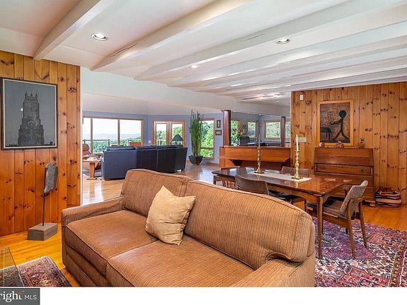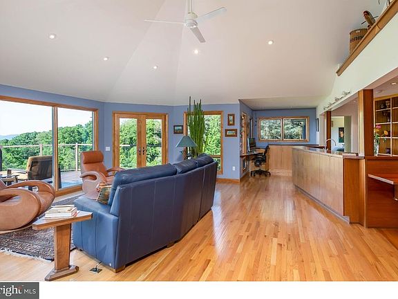 Words cannot describe this home, you will have to come see for yourself. As in the style of Frank Lloyd Wright, this home features the conception of spaces - an open floor plan that overlooks a panoramic 50 mile view and is 15 minutes from the PA Turnpike. This view is highly unusual and most spectacular for Southeastern Pennsylvania. Property is situated on 2.98 acres part of which is a large fenced in area great for dogs or play in a highly desirable small neighborhood in Cumru township. There is an expansive 1pe wood deck with custom glass railing perfect for entertaining family and friends. Custom kitchen adjoins the dining spaces. These spaces in turn flow into the main living ares, including a focus on a fireplace. Custom Maple kitchen with Corian curved counter tops with drip edge, pantry, Mahogany counter and accents, double sink with Koehler, high arc blade handle faucets and main floor laundry hook up. Lower level multipurpose room has a wet bar, custom bookcases and cabinets, custom Mahogany bar stop and counter tops. LL facilitates independent, multi-generaltional living with a suite with sink, kitchen, full bath, living area and laundry facilities. Multipurpose room has a wet bar, custom bookcases and cabinets, custom Mahogany bar top and counter. Home has a Geothermal heating and cooling system, is portable generator ready; has a new (and township inspected) septic system; has massive storage capacity and has been totally rewired and plumbing pipes updated. The addition on the home is cement board which is painted and requires very little maintenance. This home is definitely one of a kind with a view like no other in Berks County!! NOTE: Maintenance agreement on Geothermal unit until 7/9/19. **It would be greatly appreciated if you would please tell your Buyers Not to Drive Up the Driveway!!**