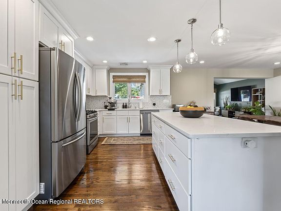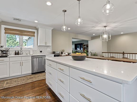 Tastefully remodeled 3 bedroom, 2 bath ranch in much sought after West Long Branch. This home offers a stunning open concept layout that is the perfect one floor living. The gourmet eat-in kitchen with Quartz counters and stainless steel appliances opens to the dining and sitting rooms. Large master bedroom with en-suite bathroom. Two more generously sized bedrooms. The living room overlooks a large deck and very private and spacious backyard, great for entertaining friends and family. Home office off the kitchen is perfect for the work from home professional. The finished basement is ideal for the kids playroom and has floating vinyl flooring. Convenient to everything.
