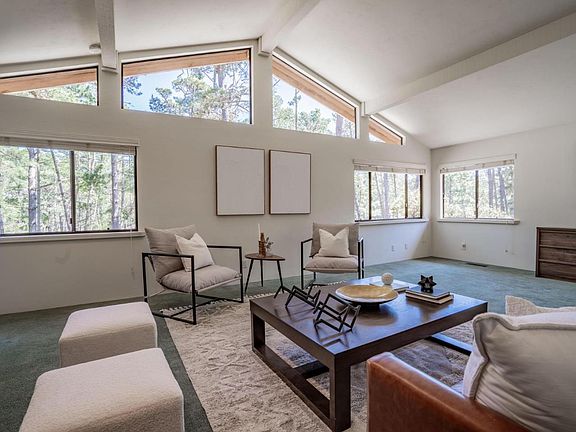 Welcome to your gorgeous sanctuary in Skyline Forest,A just moments from Carmel, Monterey and Pacific Grove, but worlds away. Watch the birds soar and hear the woods whisper from the wraparound deck of this sprawling 3 bedroom, 2.5 bath 2400 sf home. A Carmel River stone fireplace anchors the massive living room with vaulted ceiling, perfect for entertaining or cozy family gatherings. The kitchen dazzles with gleaming wood floors and polished granite countertops. Enjoy the zen vibes of the primary suite, with calming views of the trees from every window and a luxurious double sink bathroom with glass enclosed shower and soaking tub. Two additional bedrooms give everyone space to call their own. Roll out your yoga mat or gather around the tv in the family room with stunning forest views. The spacious office/bonus room is a perfect work from home sanctuary. This captivating property is located on a pin drop quiet cul-de-sac, where the only sound you'll hear is birdsong. Offered at $1,569,000, this is perhaps your best opportunity to partake of the enchanting Monterey Peninsula lifestyle.