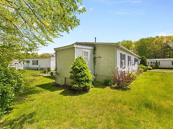 Welcome to this beautifully maintained gem, offering comfort, space, and thoughtful upgrades throughout. Step through the charming covered front entry into a bright and open-concept living and dining area, featuring vaulted ceilings and gleaming hardwood floors—perfect for everyday living and entertaining. The spacious kitchen is complete with a convenient breakfast bar, ideal for casual meals or morning coffee. Just off the dining area, sliding doors lead to a bright four-season sunroom with vaulted ceilings and easy-care vinyl flooring. The primary bedroom includes a private en-suite bath, while the second bedroom features expanded closet space for all your storage needs. Outside, enjoy the maintenance-free Trex deck—perfect for grilling or soaking in the peaceful surroundings. This home also includes an oversized shed with electricity, ideal for a workshop or extra storage. New Roof 2025. The beautifully landscaped yard backs to a wooded area, offering a serene and private backyard.