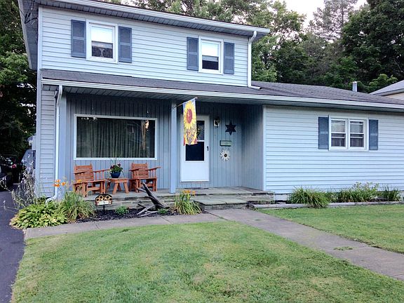 Two story home offers spacious rooms including: a first floor master bedroom, 2 upstairs bedrooms, living room, dining room, eat-in kitchen, 2 full bathrooms (one with laundry area), large basement with cement floors, covered front and back porch, small patio and a big back yard. This is available for immediate occupancy.