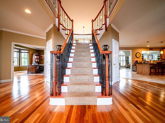 Exceptional luxury home with elegant features situated in the exclusive community of Bobby's Hunt. A gorgeous, expanded Hampton, Provincial Model built by the prestigious Procacci Home Builders. This stunning 4-bedroom, 3 full 2, 1/2-bathroom residence is where sophisticated design meets unparalleled comfort. As you enter, be greeted by a grand foyer with soaring cathedral ceilings and a graceful Juliet staircase that sets the tone for the entire home. The expansive family room which continues with the cathedral ceiling and a cozy gas-burning fireplace, seamlessly flows from the entrance. This space is perfect for both relaxation and entertaining. The main level is further distinguished by a private study, a formal dining room, and a spacious living room—all adorned with exquisite real hardwood flooring. The chef’s kitchen is a culinary delight, boasting an oversized island, elegant granite countertops, and premium stainless-steel appliances. Adjacently, a large sunroom offers additional space for casual dining or relaxation, while ceramic tile flooring and a stylish backsplash enhance the kitchen’s appeal. Upstairs, you’ll find four generously sized bedrooms, each featuring hardwood flooring. Two bedrooms share a well-appointed Jack-and-Jill bathroom, while a third bedroom enjoys the luxury of its own private en-suite bathroom. The primary bedroom is a true retreat, with a tray ceiling, a spacious sitting area, and two expansive walk-in closets. The en-suite bathroom is a sanctuary, featuring an updated stall shower with tile surround and a deep soaking tub. The home also includes a fully finished walk-out basement, perfect for additional living space or recreation. Complete with a full bathroom. Outside, a side-entry three-car garage provides ample parking, while the backyard is an entertainer’s dream with a large deck, built-in gas grill, patio pavers, and a gas firepit table. The property is beautifully landscaped on a premium lot, offering both elegance and tranquility. Experience the epitome of luxury living in this magnificent home, where every detail has been thoughtfully designed for comfort and style. Every detail of this home has been meticulously crafted with top-of-the-line upgrades to offer you the ultimate living experience. The location is well sought after due to it's top-rated schools, fine dining, shopping, and easy access to major highways.