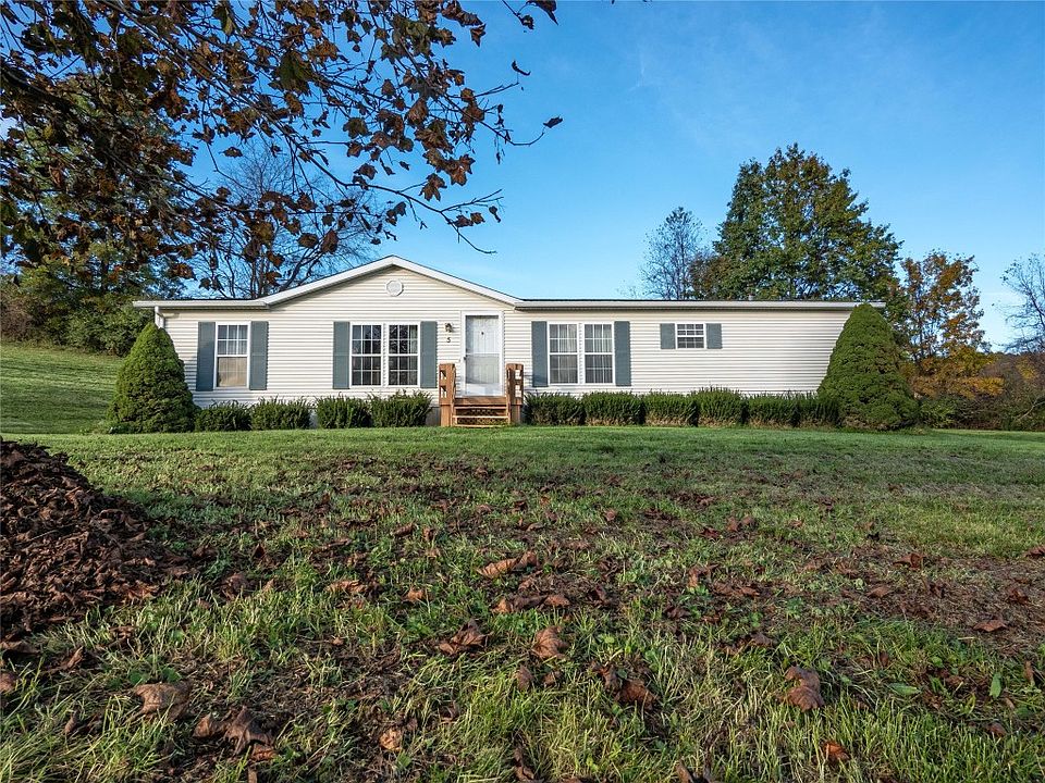 Nice three bedroom, 2 bath, 1995 manufactured double-wide ranch home nestled on 1 acre offers beautiful views of the hillsides from the screened-in gazebo, open deck, fenced area in the rear yard for your pets, and storage shed. The bright and airy interior has vaulted ceilings, a large living room, an inviting dining room with a built-in hutch, and a family room with a cozy wood-burning fireplace and sliders to the rear deck and yard. A large eat-in kitchen with a center island and built-in office area also offers appliances and plenty of cabinets and countertops. The large master bedroom has a walk-in closet and spacious master bath with double vanity, walk-in shower stall, deep soaker tub, and skylight. There are two more nice size bedrooms, a family bath with skylight, walk-in closets, central air conditioning, and a laundry/mudroom with a washer & dryer.