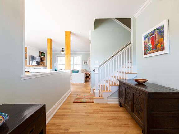 A turnkey and customized colonial in a fantastic Falmouth location. Set on a bright and sunny lot with a backdrop of exposed ledge, this picture perfect home features high ceilings, high quality hardwood floors, and charming custom finishes throughout. The open first floor hosts a kitchen with a large butcher block island, rustic hood, and natural toned cabinetry. The shiplap walls in the dining room exude character and the rough hewn beams frame the space. The front den doubles as a great first floor bedroom option with an adjoining full bath. Upstairs, the primary suite is joined by three additional bedrooms and an additional full bath. The newly finished basement provides that essential recreational space. On a nearly half acre lot only minutes to downtown Portland, Falmouth Schools, and the seashore, this is a can't-miss location with all the finer trappings of home. Association fee covers mowing of common area annually.